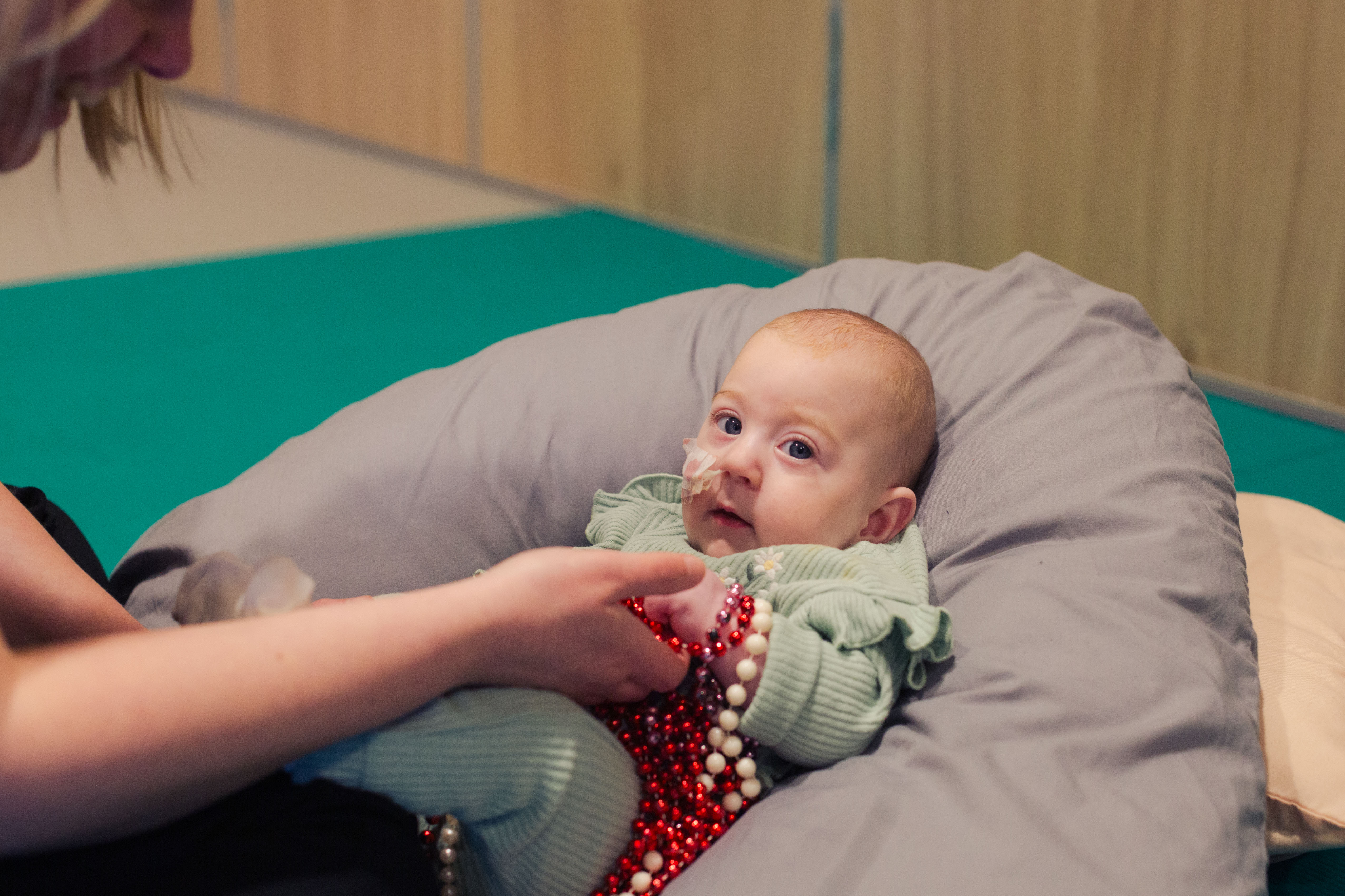 Our first session took place when Amber was around four weeks corrected age, we met Gosia and our family coordinator at the time, Glenys. I remember arriving overwhelmed and exhausted, unsure of why Amber seemed so unsettled and uncomfortable. For the first time since she was born, I felt truly heard, Gosia carefully watched Amber and noticed her severe reflux, something we’d been struggling to understand. After this, we were able to speak with her consultant, and Amber was prescribed medication that made an incredible difference to her comfort and wellbeing.