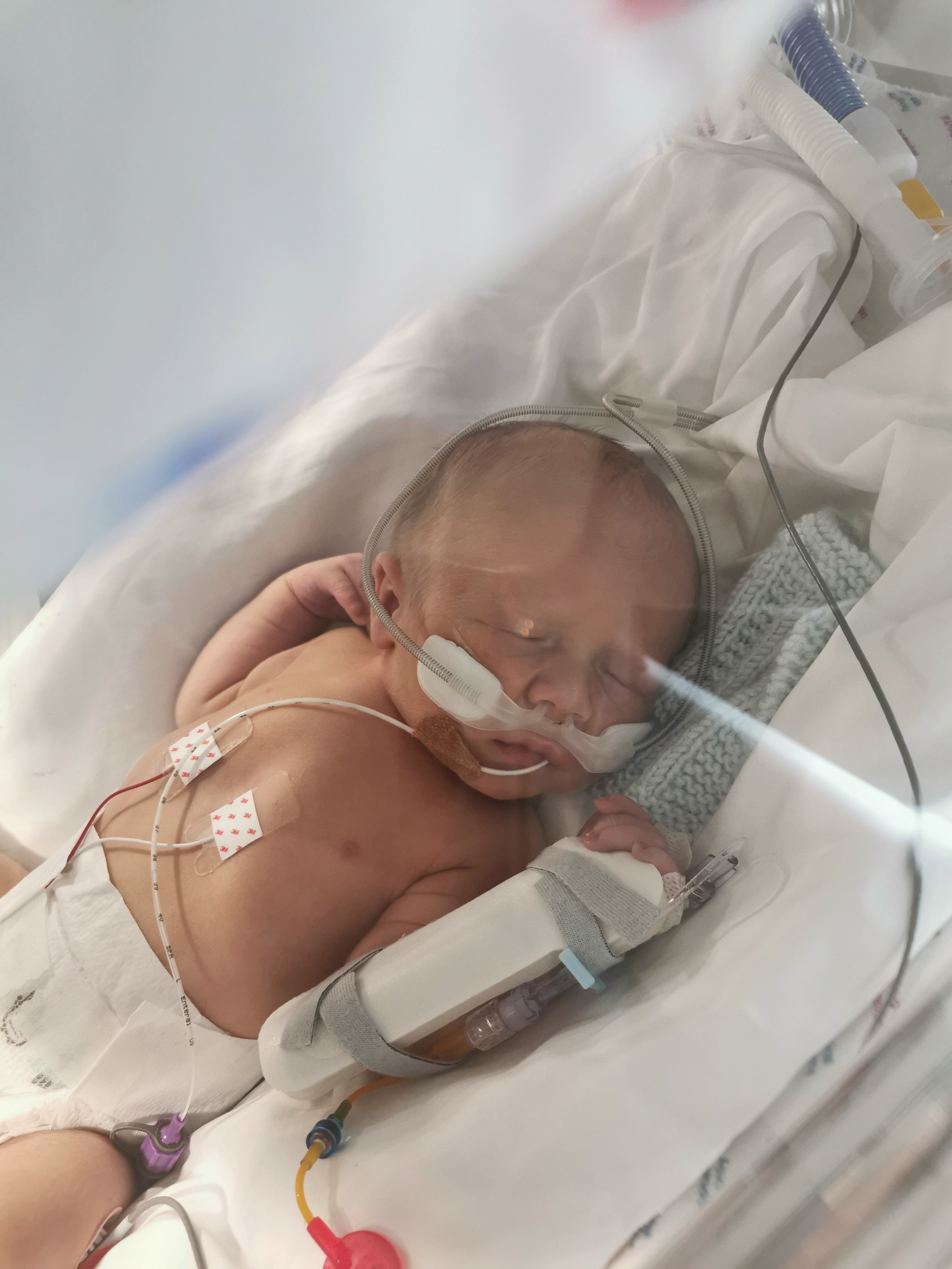 Our journey changed overnight. After watching Bwncath on Tafwyl, we went to bed and moments after the lights went out, I had an antepartum haemorrhage. Five chaotic hours later, Hopcyn was born via emergency C-section at 3:56am on 16 July 2023.